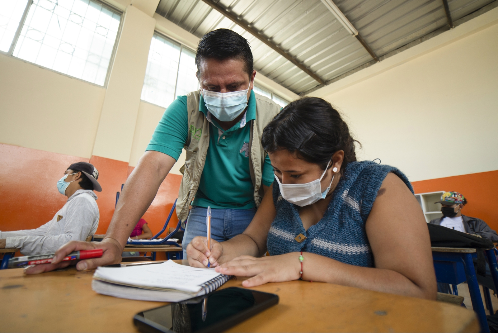 こうしてアンジーさんのもとへ引っ越してきたロミーナさん。2年近いブランクがあるなか、どうすれば学業を再開できるのか調べたところ、ユニセフ・エクアドル事務所と教育省が連携して実施している「教育平準化と加速プログラム(NAP)」に出会いました。NAPは、学業で遅れをとっている子どもや若者を支援し、退学を防ぐためのプログラムで、エクアドル国内18県で実施されており、8歳から18歳まで4364人の子どもたちが参加していました。エクアドルを含むラテンアメリカとカリブ海地域は、サハラ以南のアフリカと並び、コロナ禍による学校閉鎖で深刻な影響を受けた地域。2020年3月以降、平均して37週間も学校が閉鎖され、小学生の39%しか簡単な文章を読むことができないと推定されています。こうした状況を改善するための支援プログラムとしてNAPは実施されています。