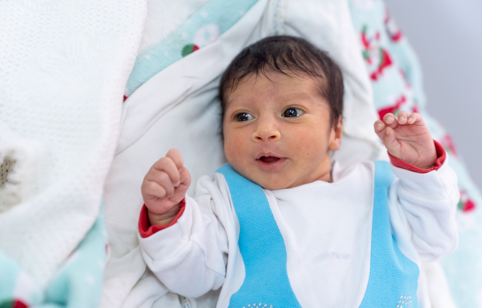 不安定ながらも、サディアさんの支援を得て妊娠期を乗り越えたケリマさんは、大事を取って、予定日前から入院。数日後、無事、元気な男の子を出産しました。赤ちゃんの大きな泣き声が響き渡る瞬間、それは、地域と医療従事者が一丸で取り組んだ妊婦健診と支援が実を結んだ瞬間でもあります。