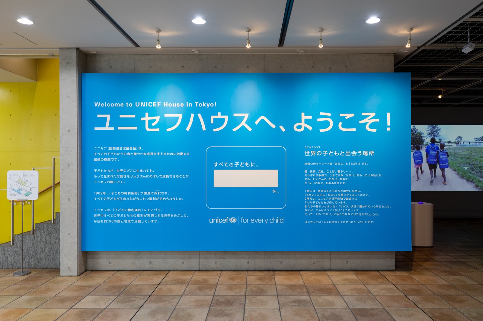 ユニセフがそのロゴマークとともに掲げる「for every child」=「すべての子どもに□□□を」は、新しいユニセフハウスを象徴するメッセージです。ユニセフハウスで世界の子どもと出会い、ユニセフと一緒に「すべての子どもに必要なこと」を考えていただければ、という思いを込めてリニューアルしました。