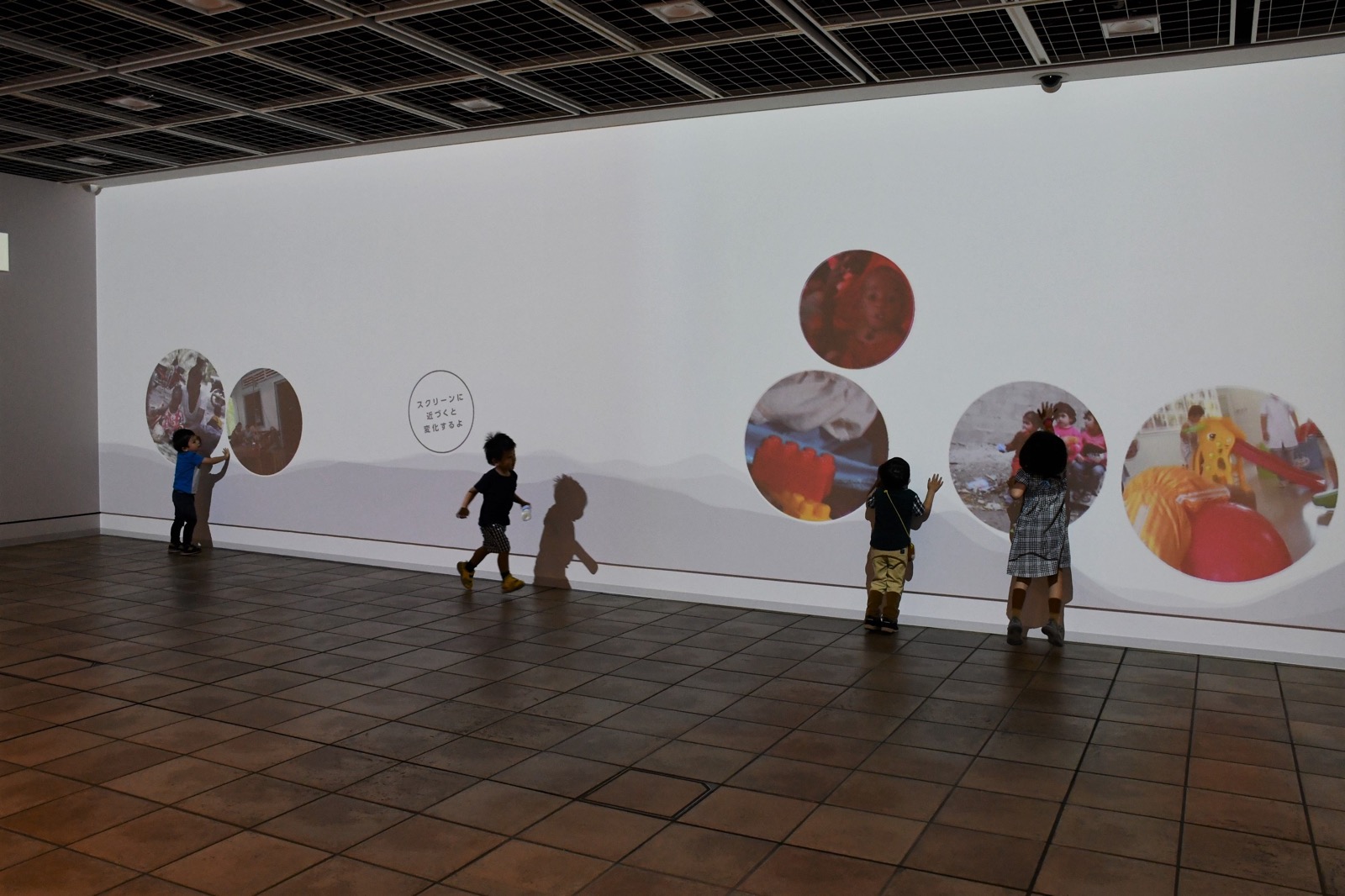 ユニセフが制作に参加したドキュメンタリー映画の一部を用い、子どもの誕生に立ち会うことができる「うまれる」。ユニセフに蓄積された膨大な画像により構成される「たべる」と「まなぶ」。自分の動きに反応する壁一面の仕掛けで見学者も遊びに参加できる「あそぶ」では、リニューアルオープン以来、子どもたちの楽しげな声が響きます。
